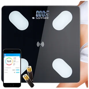 szkło hartowaneCzytelny wyświetlacz: LCDZasilanie: 2x baterie AAA (w zestawie)Klasa użytkowa: H do użytku domowego- produkt uznanej marki Sapphire: Waga analityczna SH-100S z Bluetooth mierzy między innymi: