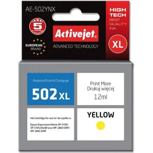 ActiveJet Tusz AE-502YNX (zamiennik Epson 502XL W44010; Supreme; 12 ml; żółty) (EXPACJAEP0298)