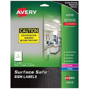 Avery Etykiety Surface Safe Signs, 18 x 25 cm, usuwalna przylepność, odporna na wodę i chemikalia, opakowanie 15 naklejek ściennych (61515)