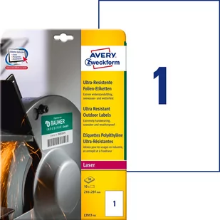 Etykiety foliowe Avery Zweckform Ultra Resistant L7917-10 - 210 x 297 mm A4, 10 arkuszy - białe