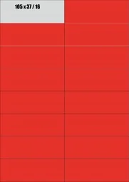 ICPC A4 CZERWONE Etykiety samoprzylepne 105x37 CZERWONE Format: A4 Ilość: 100 arkuszy 16 naklejek na arkuszu Informacje dodatkowe: Nadają się do wszystkich urządzeń drukujących - drukarek atramentowych, drukarek laserowych, kopiarek. Podłoże papierowe, matowe. Kolor czerwony (007) - w rzeczywistości kolor etykiet może nieznacznie różnić się od koloru w ofercie.