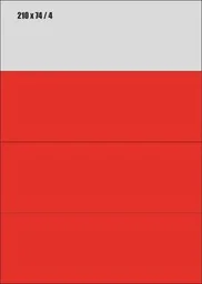 ICPC A4 CZERWONE Etykiety samoprzylepne 210x74 CZERWONE Format: A4 Ilość: 100 arkuszy 4 naklejki na arkuszu Informacje dodatkowe: Nadają się do wszystkich urządzeń drukujących - drukarek atramentowych, drukarek laserowych, kopiarek. Podłoże papierowe, matowe. Kolor czerwony (007) - w rzeczywistości kolor etykiet może nieznacznie różnić się od koloru w ofercie.