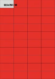 ICPC A4 CZERWONE Etykiety samoprzylepne 52,5x29,7 CZERWONE Format: A4 Ilość: 100 arkuszy 40 naklejek na arkuszu Informacje dodatkowe: Nadają się do wszystkich urządzeń drukujących - drukarek atramentowych, drukarek laserowych, kopiarek. Podłoże papierowe, matowe. Kolor czerwony (007) - w rzeczywistości kolor etykiet może nieznacznie różnić się od koloru w ofercie.
