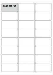 Etykiety samoprzylepne 63,5x33,9 mm - 3x8 szt. LAMBDA L-D63X33 / L-D63*33 Format: A4 Ilość: 100 arkuszy Informacje dodatkowe: Nadają się do wszystkich urządzeń drukujących - drukarek atramentowych, drukarek laserowych, kopiarek. Podłoże papierowe, matowe, białe.