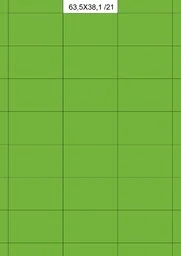 ICPC A4 ZIELONE FLUO Etykiety samoprzylepne 63,5x38,1 ZIELONE FLUO Format: A4 Ilość: 100 arkuszy 21 naklejek na arkuszu Informacje dodatkowe: Nadają się do wszystkich urządzeń drukujących - drukarek atramentowych, drukarek laserowych, kopiarek. Podłoże papierowe, matowe. Kolor zielony fluo (006) - w rzeczywistości kolor etykiet może nieznacznie różnić się od koloru w ofercie.