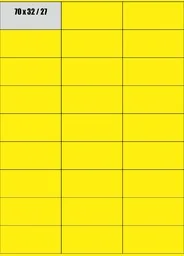 ICPC A4 ŻÓŁTE FLUO Etykiety samoprzylepne 70x32 ŻÓŁTE FLUO Format: A4 Ilość: 100 arkuszy 27 naklejek na arkuszu Informacje dodatkowe: Nadają się do wszystkich urządzeń drukujących - drukarek atramentowych, drukarek laserowych, kopiarek. Podłoże papierowe, matowe. Kolor żółty fluo (004) - w rzeczywistości kolor etykiet może nieznacznie różnić się od koloru w ofercie.