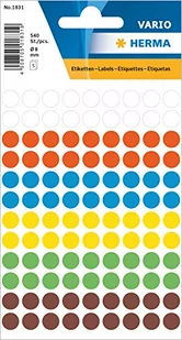 HERMA 1831 uniwersalne etykiety/kolorowe kropki okrągłe (Ø 8 mm, 5 arkuszy, papier metalowy, matowy) samoprzylepne, trwałe punkty do oznaczania ręcznego pisania, 540 punktów samoprzylepnych, kolorowe