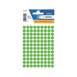 Etykiety uniwersalne zielone ø 8 mm okragle papier mat 540 szt. HERMA Kropki kolorowe/oznaczajace (male opakowania) Uniwersalne etykiety do oznaczania i organizowania. Etykiety samoprzylepne wykonane z wysokiej jakosci papieru do pisania. Etykiety i papier podkladowy z bezchlorowo bielonej celulozy, klej bez rozpuszczalników. Do pisania wszystkimi przyborami do pisania i maszynami do pisania.