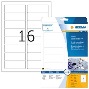 10 arkuszy Etykiety wykonane z jedwabiu octanowego, na arkuszach A4, samoprzylepne. Idealne na seminaria, konferencje, targi lub do etykietowania tkanin, dywanów i materacy. Praktyczna alternatywa dla etykiet plastikowych: szybkie etykietowanie, doskonałe trzymanie bez Etykiety tekstylne HERMA A4 88,9x 33,8 mm białe 160 szt.