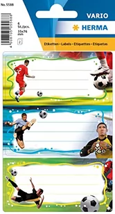 HERMA Etykiety do zeszytów z motywem piłkarza, 5588, samoprzylepne, z motywami do szkoły dla dzieci, dziewcząt i chłopców, 6 etykiet szkolnych, 76 x 35 mm