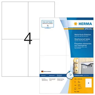 HERMA Samoprzylepne etykiety foliowe odporne na warunki atmosferyczne, 4 etykiety na arkusz A4, 160 etykiet do drukarek atramentowych, 105 x 148 mm (4599)