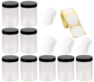 Pojemnik Plastikowy Słoik 1L 9 Szt Etykiety