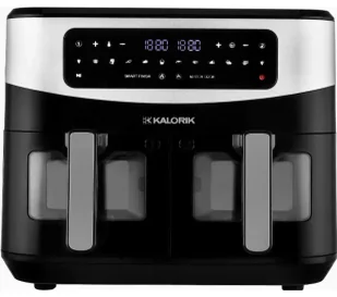 Beztłuszczowa frytownica XXL o pojemności 10 litrów, podwójna szklana frytownica AIR FRYER o mocy 2600 W, dwie szuflady, programy automatyczne