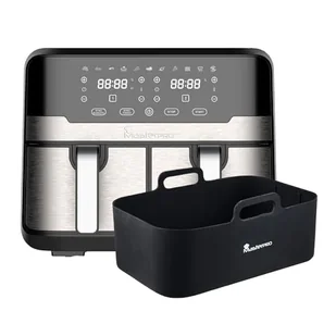 MasterPRO Rocket Duo 900 - Podwójna frytkownica bezolejowa - Kolor Czarny - Pojemność 9 l i 2400 W - Ekran Dotykowy LED i Nieprzywierający kosz + Prostokątna taca do pieczenia Silikon 12.7X19.5X7+2CM
