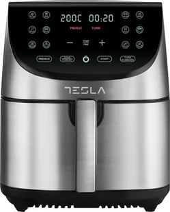 Frytkownica na gorące powietrze Tesla AF701BX, 7 l, 1700 W, panel cyfrowy, 12 programów, stal nierdzewna 360° cyrkulacja ciepłego powietrza. Frytkownice powietrzne wykorzystują cyrkulację gorącego powietrza do smażenia potraw, co czyni je zdrowszym wyborem w porównaniu z tradycyjnym smażeniem. Proces smażenia jest dość szybki, a potrawy pozostają chrupiące i pyszne. Duży kosz Dzięki tej frytkownicy Tesla i jej dużemu koszowi z łatwością ugotujesz wystarczająco dużo jedzenia dla całej rodziny lub grupy przyjaciół. Podziel się tymi zdrowszymi, niskotłuszczowymi przepisami ze wszystkimi!Kontrola temperatury i czasu Dotykowy ekran LED umożliwia łatwą kontrolę poziomu temperatury (60 - 200°C) i czasu gotowania: