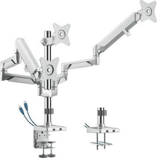 Uchwyt gazowy na 3 monitory, srebrny z dwoma portami USB, standard VESA, monitory 17"-27", HDWR SolidHand-BG03SU