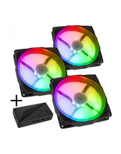 King Kits Noiseblocker NB-eLoop X B12-PS ARGB, PWM - 120mm, czarny + ARGB 8x Port Hub - 3er Set LUBU-048