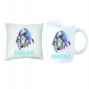 KOŃ KONIE ZESTAW PREZENT PODUSZKA + KUBEK+ IMIĘ