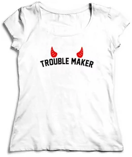 TROUBLE MAKER - osoba siejąca niezgodę, Problemator. SPECYFIKACJA KOSZULKI: Materiał tkany w drobny splot poprawia jakość nadruku Zalecamy pranie w temperaturze do 40 stopni Materiał: 100% Bawełny Ring Spun Gramatura 140g/m2 Bardzo miękki materiał