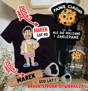 urodzin. Miękka, wygodna i trwała. Kufel – Solidny szklany kufel z jubileuszowym motywem, doskonały do piwa, napojów gazowanych lub innych ulubionych trunków. Otwieracz PERSONALIZOWANY - Z NAPISEM STO LAT ! oraz imieniem solenizanta ! Opakowanie – Eleganckie pudełko z okienkiem, ozdobione wypełniaczem papierowym, nadające zestawowi ekskluzywny wygląd. Cechy produktu: Rozmiary koszulki: