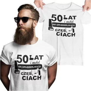 Koszulka na urodziny na 50 pięćdziesiątkę z nadrukiem 50 lat i nadal na oryginalnych częściach