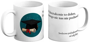 Kubek z okazji Dnia Nauczyciela bądź na zakończenie roku szkolnego. Sprawdzi się idealnie jako podarunek od klasy lub grupy. SPECYFIKACJA KUBKA: Idealny na oryginalny prezent, zapakowany w białe estetyczne pudełeczko z okienkiem. Nadruk na kubku wykonany jest trwałą metodą sublimacyjną.