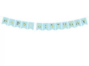Piękny jasno niebieski baner urodzinowy z napisem Happy Birthday! Idealny dodatek do dekoracji pomieszczenia przygotowywanego pod imprezę urodzinową solenizanta. Jasno niebieskie banery to HIT wśród dekoracji i wzbudzają zainteresowanie i zachwyt wśród gości. Zestaw zawiera literki i ok. 250 cm białej tasiemki, natomiast wymiary po złożeniu to wysokość ok 15 cm i długość ok.