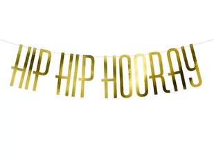 Piękny nietuzinkowy złoty baner z napisem HIP HIP HOORAY - Świetny element dekoracji pomieszczenia przygotowywanego pod imprezę, takowy baner zaskoczy nie tylko Twoich gości lecz i Ciebie samego! Zestaw zawiera 12 liter i około 2 metry złotego sznurka