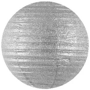 Lampion brokatowy Srebrny Duży papierowy lampion w kształcie kuli w kolorze srebrnym z pięknie mieniącym się brokatowym połyskiem. Metalowy stelaż wewnątrz utrzymuje kształt lampionu i pozwala na zawieszenie dekoracji. Produkt wysyłany w formie złożonej.
