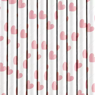 PartyDeco Słomki papierowe, "Serca", biało - różowe , 10 sztuk