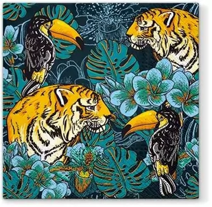Świetne serwetki z kolekcji Wild Nature. Serwetki w wielokolorowej wersji z nadrukiem Jungli oraz zwierząt takich jak Tygrys oraz Tukan. Jeżeli kompletujesz dekoracje na JUNGLA PARTY to te serwetki są zdecydowanie dla Ciebie. Niewątpliwie wzbogacą Twoją dekorację. Zestaw zawiera 20 szt serwetek typu lunch.