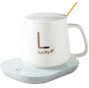 Elektryczny Podgrzewacz Pod Kubek + Kubek Z Pokrywką + Łyżeczka Biały Da27