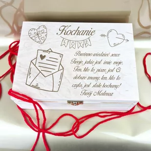 - drewniana skrzyneczka - 5 przegródek wypełnionych siankiem - 5 drewnianych serduszek z grawerem specyfikacja: