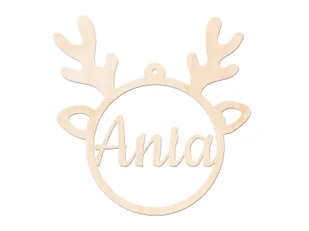 Zawieszka renifer na choinkę na Boże Narodzenie z imieniem. Idealnie nadaje się również jako dodatek do prezentów czy na stół wigilijny. Imię prosimy podać w notatce do zamówienia. Materiał: sklejka. Kolor: naturalny. Wymiary: 16 x 16 cm.