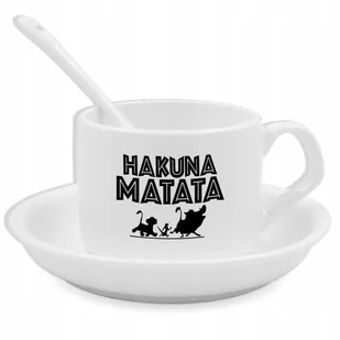 Zestaw Biały Filiżanka Podstawka Łyżeczka HAKUNA MATATA Słodkie Bajkowe Wz