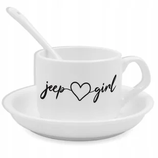 Zestaw Biały Filiżanka Podstawka Łyżeczka JEEP GIRL Słodkie Bajkowe Wzory