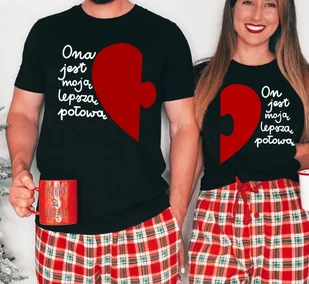 Zestaw koszulek dla pary. Zestaw składa się z dwóch koszulek damskiej i męskiej. Koszulki wykonane z bawełny. Zestaw koszulek dla par "Ona jest moją lepszą połówką / On jest moją lepszą połówką" Podkreślcie swoje uczucie z humorem i stylem dzięki temu wyjątkowemu zestawowi koszulek dla par! Każda koszulka to wyraz miłości i bliskości, idealny na prezent lub wspólne wyjście. Wzór: Koszulki z napisami "Ona jest moją lepszą połówką" i "On jest moją lepszą połówką" Zestaw ten jest idealnym pomysłem na prezent dla zakochanej pary.
