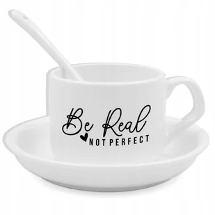 Zestaw Filiżanka Łyżeczka Podstawka BE REAL NOT PERFECT Na Prezent Wzory