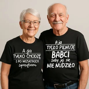Zestaw Koszulek dla Babci i Dziadka – „A ja tylko chodzę i po wszystkich sprzątam” + „A ja tylko pilnuję babci, żeby jej się nie nudziło” Opis produktu: Wyjątkowy zestaw koszulek dla Babci i Dziadka, który wprowadzi do domu jeszcze więcej uśmiechu! Ten humorystyczny komplet to doskonały sposób, by podkreślić ich relację, dystans do siebie oraz ogromne poczucie humoru. W zestawie znajdują się dwie koszulki: dla Babci – z napisem „A ja tylko chodzę i po wszystkich sprzątam”dla Dziadka – z napisem „A ja tylko pilnuję babci, żeby jej się nie nudziło” To idealny prezent na Dzień Babci i Dziadka, urodziny, rocznicę, święta czy jako miła niespodzianka od wnuków lub całej rodziny. Obie koszulki wykonane są z miękkiej, wysokogatunkowej bawełny, która gwarantuje maksymalny komfort noszenia.
