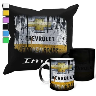 ZESTAW KUBEK MAGICZNY + POSZEWKA Z PODUSZKĄ- CHEVROLET SAMOCHODY + IMIĘ