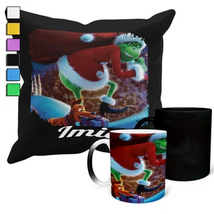 ZESTAW KUBEK MAGICZNY + POSZEWKA Z PODUSZKĄ- GRINCH ŚWIĘTA PREZENT + IMIĘ