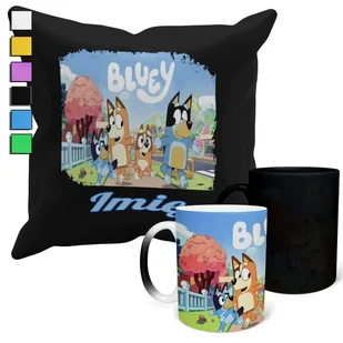 ZESTAW KUBEK MAGICZNY + POSZEWKA Z PODUSZKĄ- NIEBIESKI PIESEK PREZENT + IMI