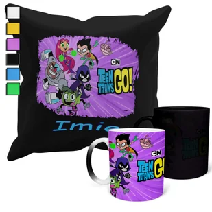 ZESTAW KUBEK MAGICZNY + POSZEWKA Z PODUSZKĄ-PREZENT MŁODZI TYTANI + IMIĘ