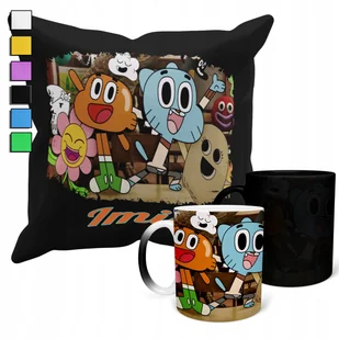 ZESTAW KUBEK MAGICZNY + POSZEWKA Z PODUSZKĄ-PREZENT ŚWIAT GUMBALLA + IMIĘ