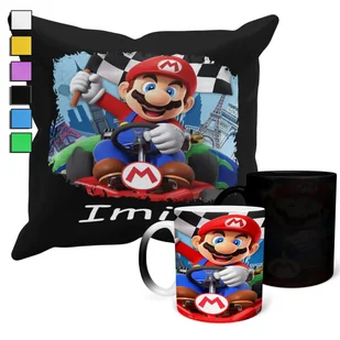 Zestaw Kubek Magiczny + Poszewka Z Poduszką- Super Mario Gry Prezent + Imię