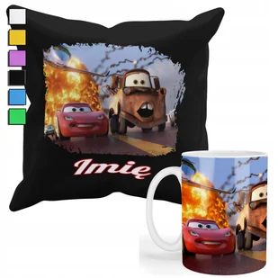 ZESTAW KUBEK + PODUSZKA Z POSZEWKĄ-BAJKA CZERWONE AUTA + IMIĘ