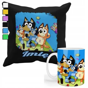 Zestaw Kubek + Poduszka Z Poszewką- Prezent Dla Fana Niebieski Piesek + Imi
