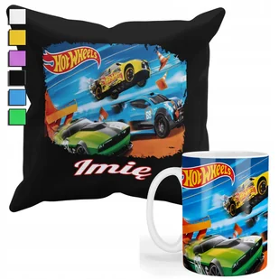 ZESTAW KUBEK + PODUSZKA Z POSZEWKĄ- PREZENT DLA FANA SAMOCHODY AUTA + IMIĘ