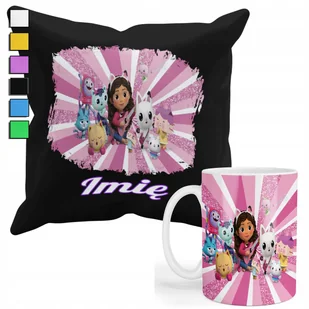ZESTAW KUBEK + POSZEWKA Z NADRUKIEM-DLA FANA KOCI DOMEK GABI PREZENT +IMIĘ