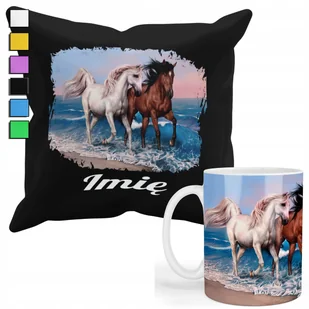ZESTAW KUBEK + POSZEWKA Z NADRUKIEM-DLA FANA PREZENT KONIE ZWIERZĘTA+IMIĘ